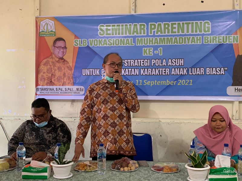 SERAMBINEWS.COM, BIREUEN - Sekolah Luar Biasa atau SLB Vokasional Muhammadiyah Bireuen, menggelar seminar parenting bagi orang tua murid di sekolah itu, Sabtu (11/9/2021).