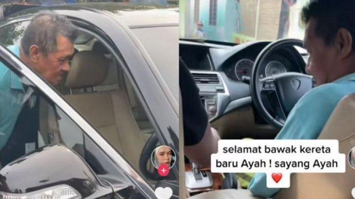 Kini pria itu dihadiahi mobil baru oleh anaknya tersebut.