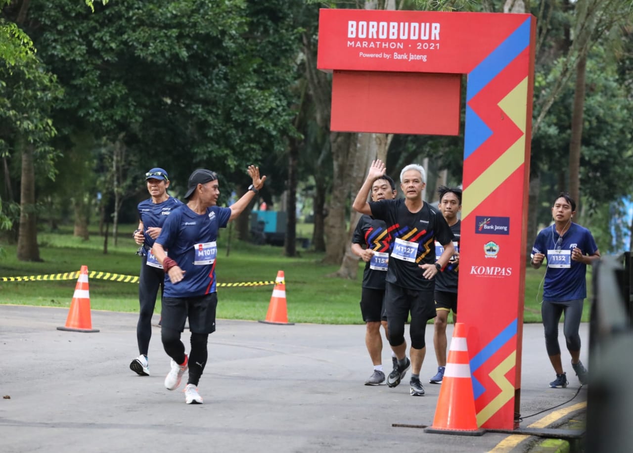 Ajang Borobudur Marathon kali ini memang digelar berbeda. Karena pandemi, para peserta hanya berlari mengelilingi kawasan Candi Borobudur dan tidak ke