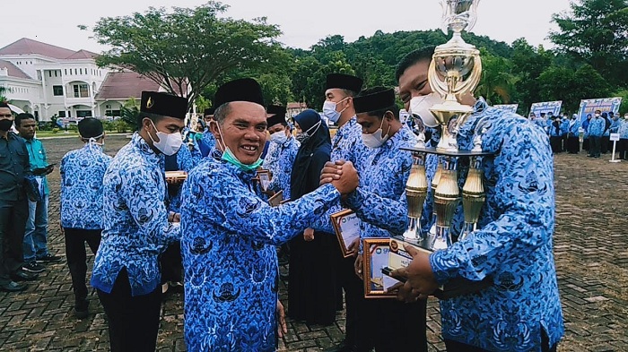 Usai pelaksanaan apel pengibaran bendera, Bupati Abdya, Akmal Ibrahim, SH diikuti Wakil Bupati, Muslizar MT menyerahkan hadiah, trofi, serta penghargaan bagi ASN dan SKPK terbaik kategori Musabaqah Tilawatil Quran (MTQ), kategori pemenang cabang olahraga, dan kategori pemenang lomba mewarnai.