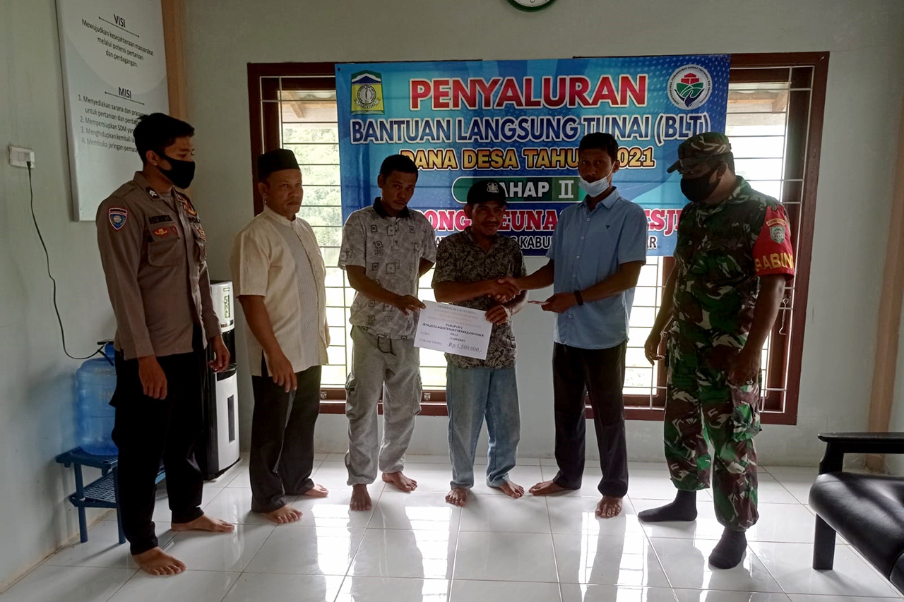 Penyaluran BLT-DD langsung didampingi Babinsa Koramil 19/Leupung Kodim 0101/Aceh Besar Serda Syarifuddin bersama Bhabinkamtibmas Polsek Leupung Briptu Hery.