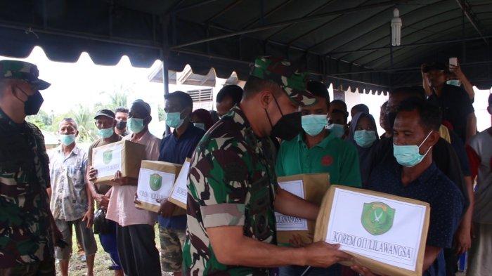 Komandan Korem (Danrem) 011/Lilawangsa, Kolonel Inf Bayu Permana beserta rombongan, Selasa (4/1/2021) mengunjungi warga terdampak banjir