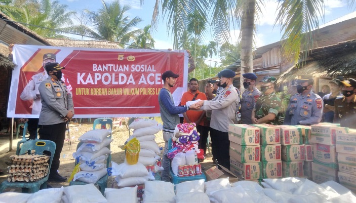 “Saya mewakili Kapolda Aceh untuk menyalurkan bantuan dari Bapak Kapolda Aceh untuk warga yang korban banjir.