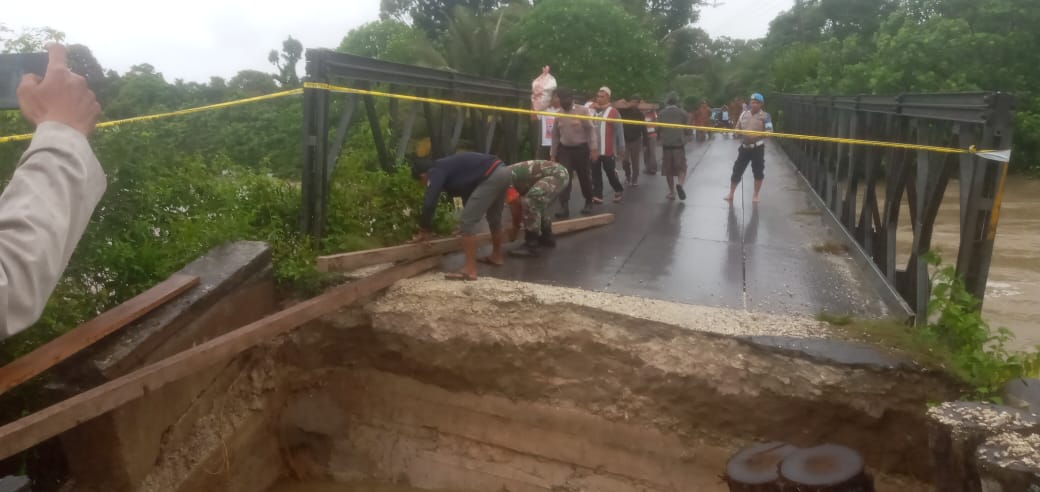 sebuah jembatan tepatnya di Desa Lalla Bahagia, Kecamatan Salang, bagian kepala jembatan atau abutment jebol diterjang arus sungai