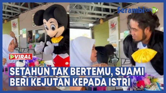 VIDEO Setahun Tak Bertemu, Suami Beri Istri Kejutan Pakai Kostum Mickey Mouse