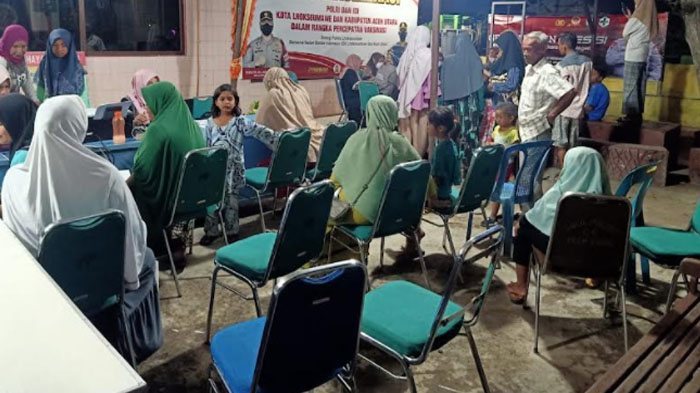 SERAMBINEWS.COM, LHOKSEUMAWE - Gerai Vaksin malam hari di wilayah hukum Polres Lhokseumawe terus berlanjut untuk melayani warga.