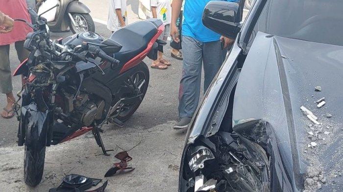 Kondisi sepmor hancur bagian depannya, lampu dan perlengkapan lepas termasuk rodanya.