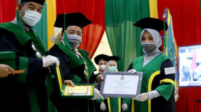 “Jadilah sarjana yang hebat, alumni yang kokoh dan sosok intelektual dan ilmuan yang punya pendirian, profesional dan bermoral,” kata Warul Walidin dihadapan para wisudawan.