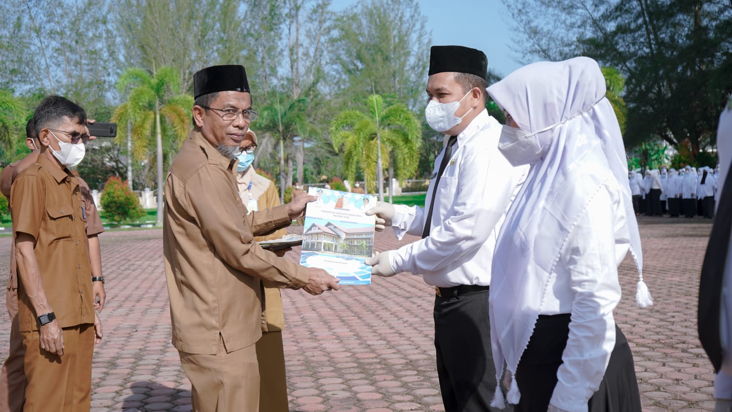 Penyerahan SK 100 persen kepada CPNS formasi tahun 2019 berlangsung di halaman Kantor Bupati diwakili Sekda Nagan Raya H Ardimartha, Senin (28/3/2022).
