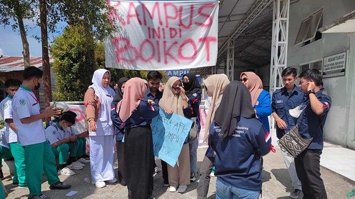Seratusan mahasiswa Sekolah Tinggi Ilmu Kesehatan (STIKES) Payung Negeri Aceh Darussalam Cabang Bener Meriah, menggelar aksi unjuk rasa di kampus