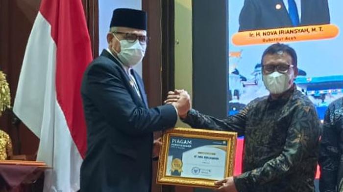 SERAMBINEWS.COM, BANDA ACEH - PT Mifa Bersaudara selaku anak perusahaan Media Djaya Bersama Grup kembali menerima anugerah penghargaan sebagai perusahaan yang melaksanakan program TJSLP/CSR Terbaik Se-Aceh yang diberikan langsung oleh Gubernur Aceh Ir. Nova Iriansyah, MT pada acara Pembukaan Musrenbang Aceh, Kamis (14/04/2022).