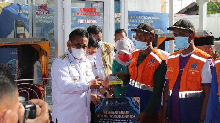 Wali Kota Banda Aceh Serahkan Ratusan Paket Minyak Goreng dan Sembako ke Juru Parkir