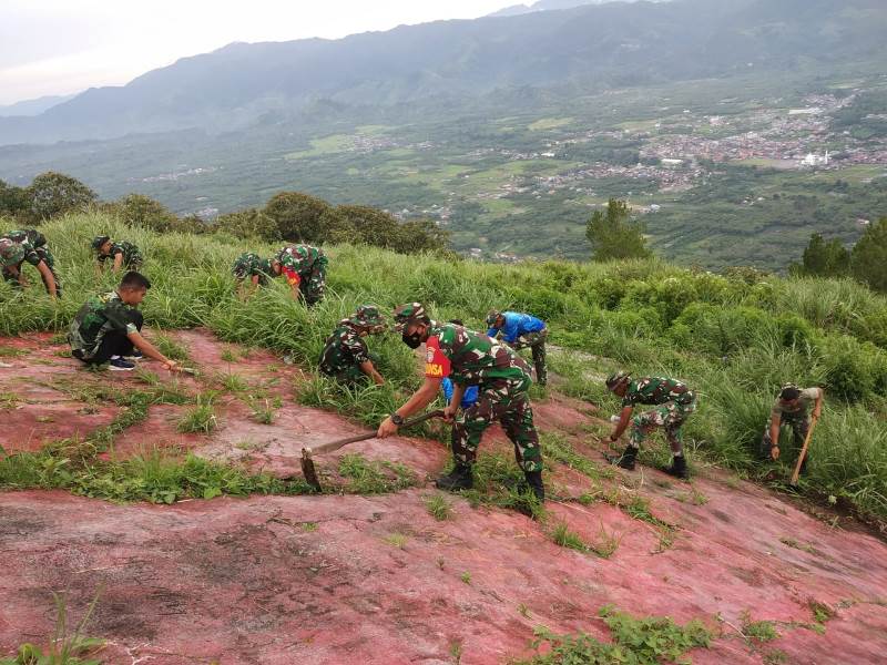 Berpotensi Jadi Objek Wisata di Bener Meriah, TNI Kembali Gotong Royong Bersihkan Bukit Merah Putih