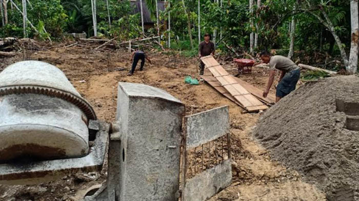 Rumah miliknya sudah mulai dikerjakan dengan memasang pondasi oleh anggota TNI.