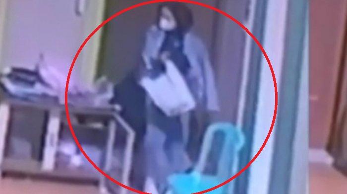 Adapun ciri ciri pelaku dari rekaman CCTV diduga perempuan mengenakan hijab warna hitam.