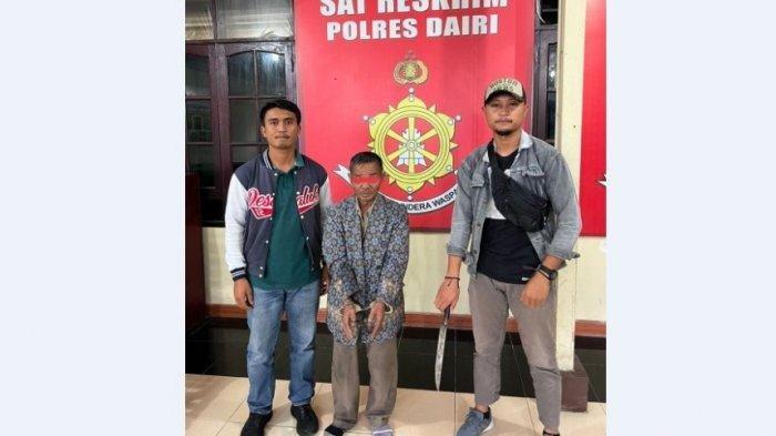 Seorang pria lanjut usia di Desa Bangun Kecamatan Parbuluan Kabupaten Dairi ditangkap Polisi karena telah membunuh adik kandungnya sendiri, Kamis (9/6/2022).