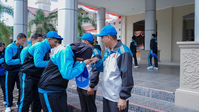 "Jangan sampai adik-adik atlet kecut nyalinya melihat kontingen lain. Kita harus mampu membuat kontingen lain kecut kalau melihat kita," tegas Sekda.