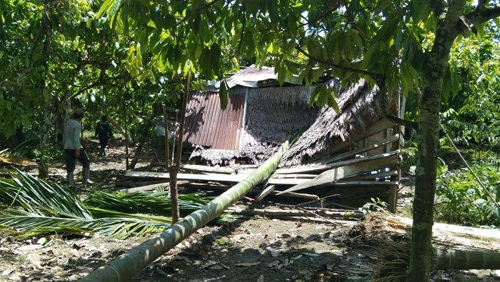Tak hanya itu, beberapa jenis tanaman pertanian, salah satunya pohon pinang juga tampak bertumbangan.