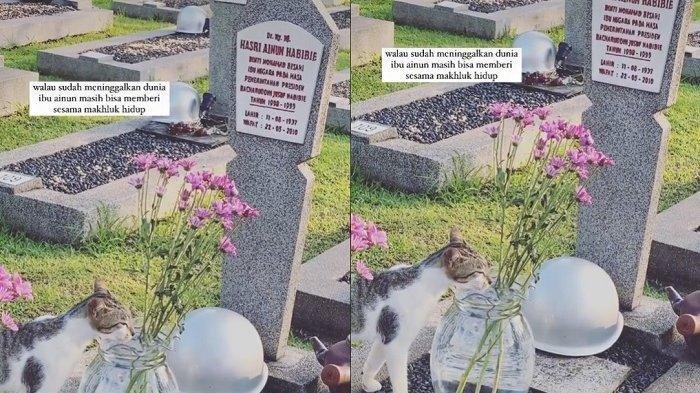 Viral Kucing Minum dari Vas Bunga Atas Makam Ainun, Perekam Ungkap Sifat Baik Istri BJ Habibie