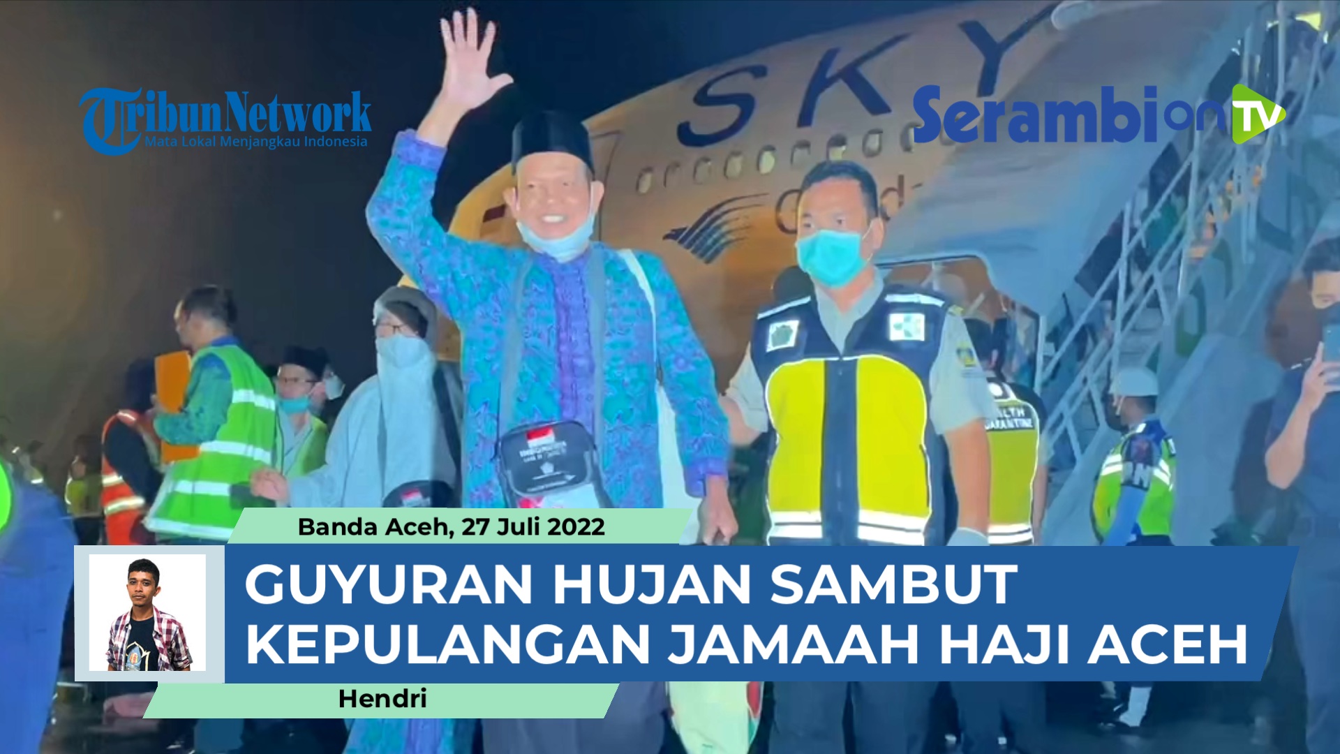 Kepulangan jamaah haji Aceh disambut oleh guyuran hujan, sama halnya ketika jamaah kloter pertama berangkat ke Tanah Suci pada Selasa 14 Juni 2022.