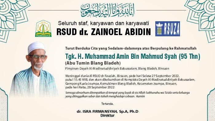 RSUD dr. Zainoel Abidin turut Berduka Cita atas Meninggalnya Abu Tumin Blang Bladeh