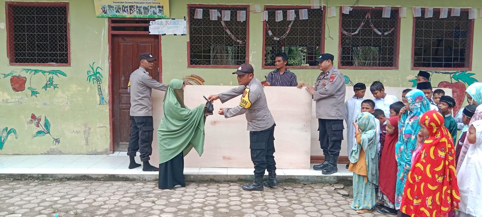 Kapolres Aceh Tamiang AKBP Imam Asfali melalui Kapolsek Seruway Iptu Yussyah Riandi menyampaikan, bantuan bahan baku bangunan merupakan kegiatan program Jumat Berkah Polsek Seruway untuk sarana pendidikan Agama di desa Gelong sebagai wujud peduli Polri dan pengayoman bagi masyarakat.