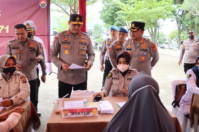 SERAMBINEWS.COM, BANDA ACEH - Kapolda Aceh, Irjen Pol Ahmad Haydar, meninjau kegiatan bakti kesehatan berupa pengobatan gratis dalam rangka HUT ke-71 Humas Polri di Pasar Aceh, Kamis (27/10/2022).