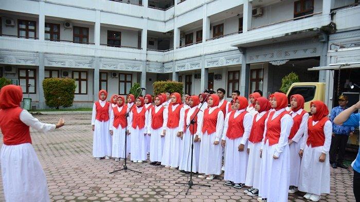 Dengan pakaian putih dipadu rompi merah, mereka menyanyikan lagu Indonesia Raya dan lagu Satu Nusa Satu Bangsa, para siswa dengan kompak menjalankan tugasnya dengan baik.