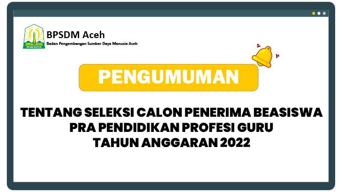 Pengumuman tentang seleksi calon penerima beasiswa pra pendidikan profesi guru tahun anggaran 2022