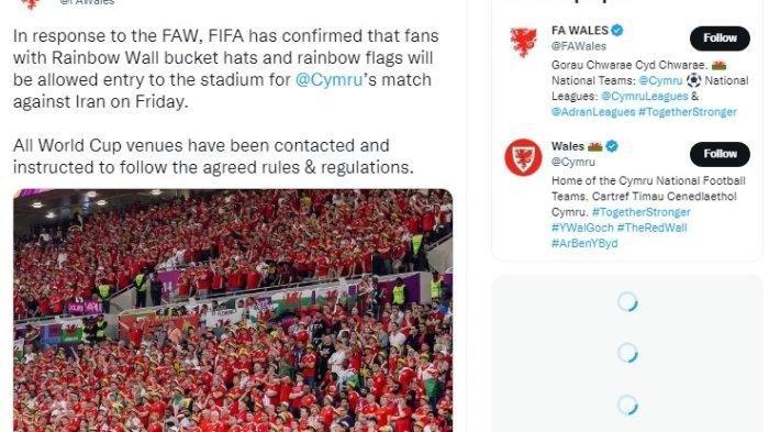 FIFA telah mengizinkan pemakaian bendera berwarna pelangi dan topi ember untuk masuk ke dalam stadion dalam pertandingan Piala Dunia Qatar 2022 antara Wales vs Iran.
