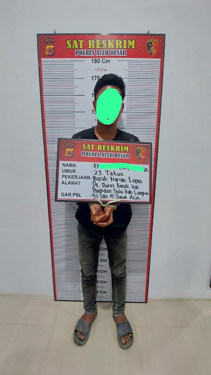 SERAMBINEWS.COM, JANTHO - FA (23) seorang pemuda asal kabupaten Langkat, Sumatera Utara, diamankan Personil Satreskrim Polres Aceh Besar.