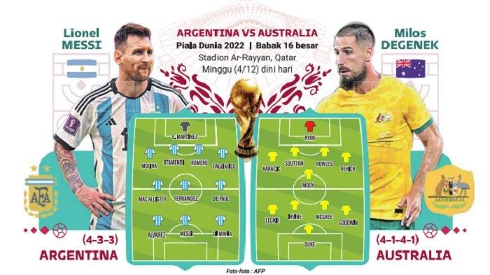 link live streaming Argentina vs Australia, Babak 16 Besar Piala Dunia 2022, Head To Head dan Prediksi Pemain
