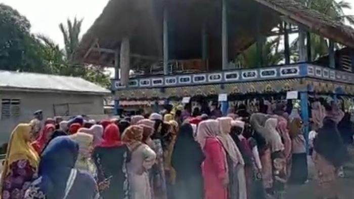 SERAMBINEWS.COM, BIREUEN - Ratusan ibu dan sebagian bapak warga Pandrah, Bireuen, Kamis (22/12/2022) padati lokasi pasar murah di halaman meunasah Gampong Pandrah Kandeh, Kecamatan Pandrah dan