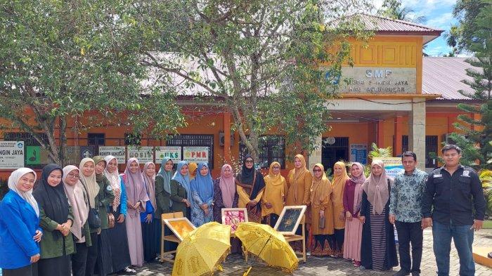 Mahasiswi FKIP dan Teknik Universitas Iskandar Muda juga mengunjungi beberapa stan yang memamerkan sejumlah karya hasil kreasi para siswa dengan tema kearifan lokal.