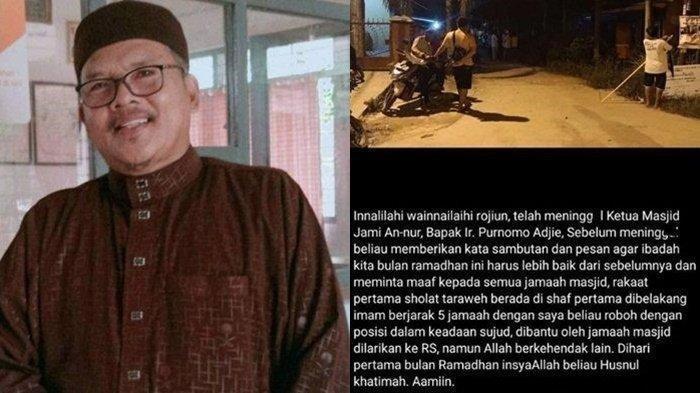 Meninggalnya Ir Purnomo Adjie ketua Masjid Masjid Jami An Nur, Mata Merah, Palembang saat sedang tarawih viral di sosial media salah satunya diposting oleh akun instagram @promopalembang.