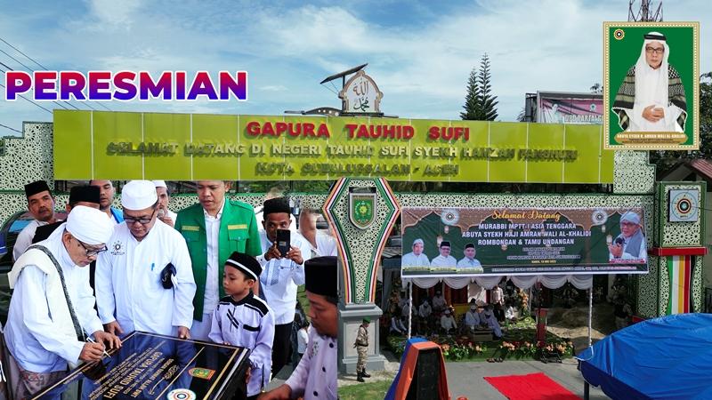 Peresmian Gapura Tauhid Sufi Syekh Hamzah Fansuri ini dihadiri Wali Kota Subulussalam, H Affan Alfian Bintang SE, Forkopimda dan Gubernur MPPTI Kota S
