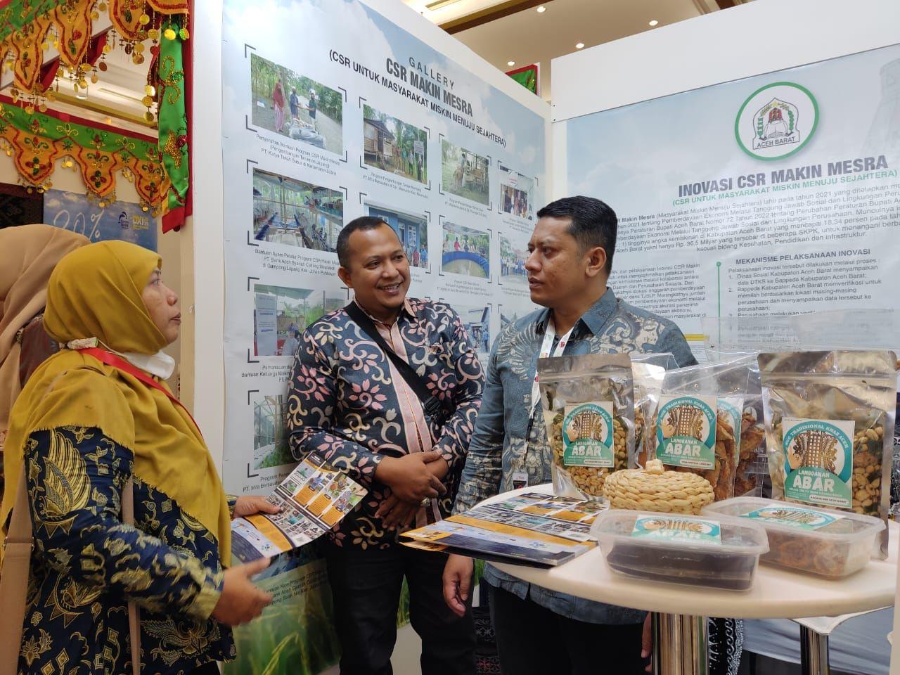 Kabid Ekonomi Bappeda Aceh Barat, Husni Yulham didampingi Section Head CSR PT Mifa, Nazaruddin memberikan penjelasan kepada pengunjung stand