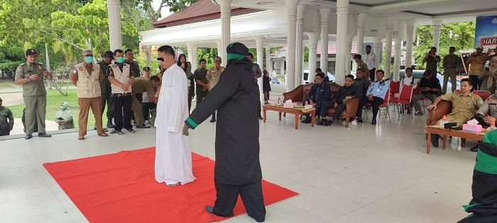 Terbukti Bersalah, Pemuda Agen Chip Higs Domino di Langsa Kena Cambuk 8 Kali
