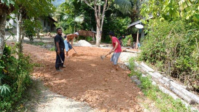 Win Lingga mengatakan jalan di permukiman penduduk di Desa Lawe Loning Aman, Kecamatan Lawe Sigala-gala, Kabupaten Aceh Tenggara itu mereka timbun pakai material tanah bebatuan.