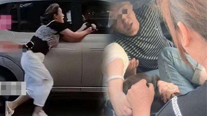 Hal itu terjadi lantaran suami nekat melajukan mobilnya tersebut, sementara tangan istrinya lagi menjambak rambut si perebut lelaki orang (pelakor)