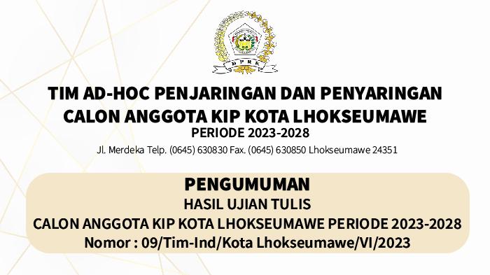 Pengumuman Hasil Ujian Tulis Calon Anggota Kip Kota Lhokseumawe Periode 2023-2028
