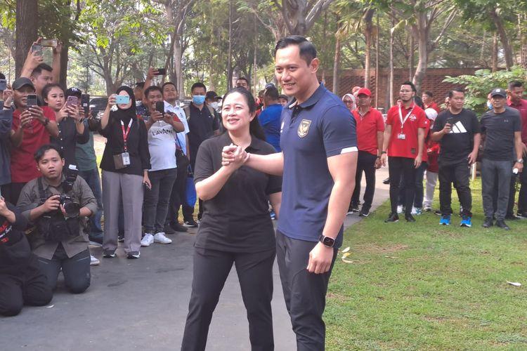 Sedangkan, AHY mengenakan kaus olahraga berwarna biru dengan celana hitam.