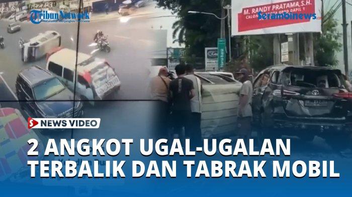 VIDEO Ugal-ugalan di Jalan, 2 Angkot di Bandar Lampung Terbalik hingga Tabrak Mobil Fortuner