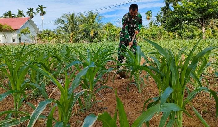 Kodim 0102/Pidie melakukan pengembangan tanaman program Ayam Jagung Pangdam Iskandar Muda (IM) pada tahap awal dihamparan lahan 1 Ha di Lueng Putu