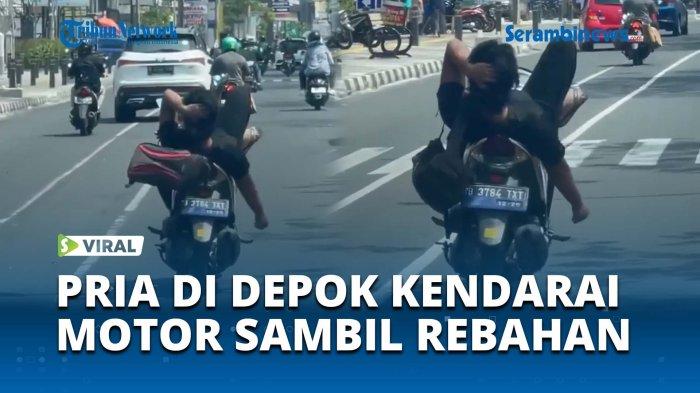 Dalam keterangan video diketahui momen pria bawa motor sambil rebahan itu terjadi di jalan protokol Margonda, Depok.