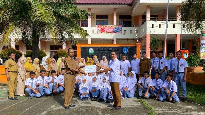 Bantuan tersebut diserahkan oleh Waka Kesiswaan, Gus Rizal S.Pd mewakili Kepala Sekolah, Afnidar, S.Pd kepada Ketua Lazismu Tapaktuan, Dedy Sastra, S.Ag, Senin (23/10/2023).