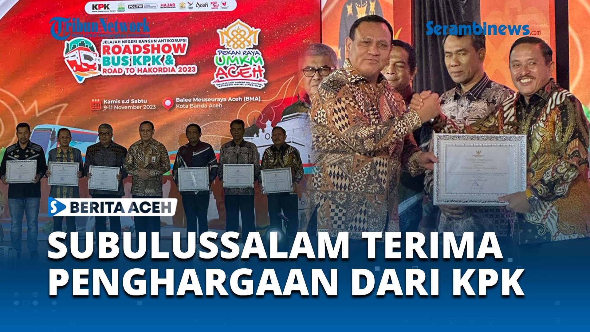 Penghargaan itu diserahkan langsung oleh Ketua KPK RI, Firli Bahuri kepada Wali Kota Subulussalam, H Affan Alfian Bintang, Kamis (9/11/2023) di Gedung Balai Meuseuraya Aceh (GBMA), Banda Aceh.