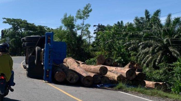 Kaya yang ditebang yang masih gelondongan di Kila sebelumnya dibawa ke Medan, Sumut jalur darat.