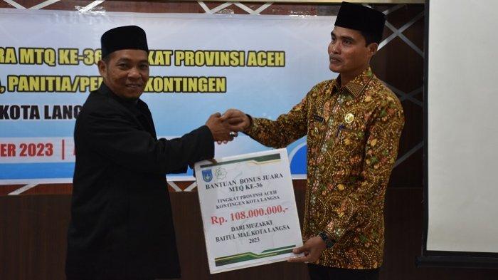Pemerintah Kota Langsa memberikan bonus total Rp 108 juta kepada duta Kota Langsa (kafilah) MTQ yang meraih juara umum III MTQ XXXVI Aceh 2023
