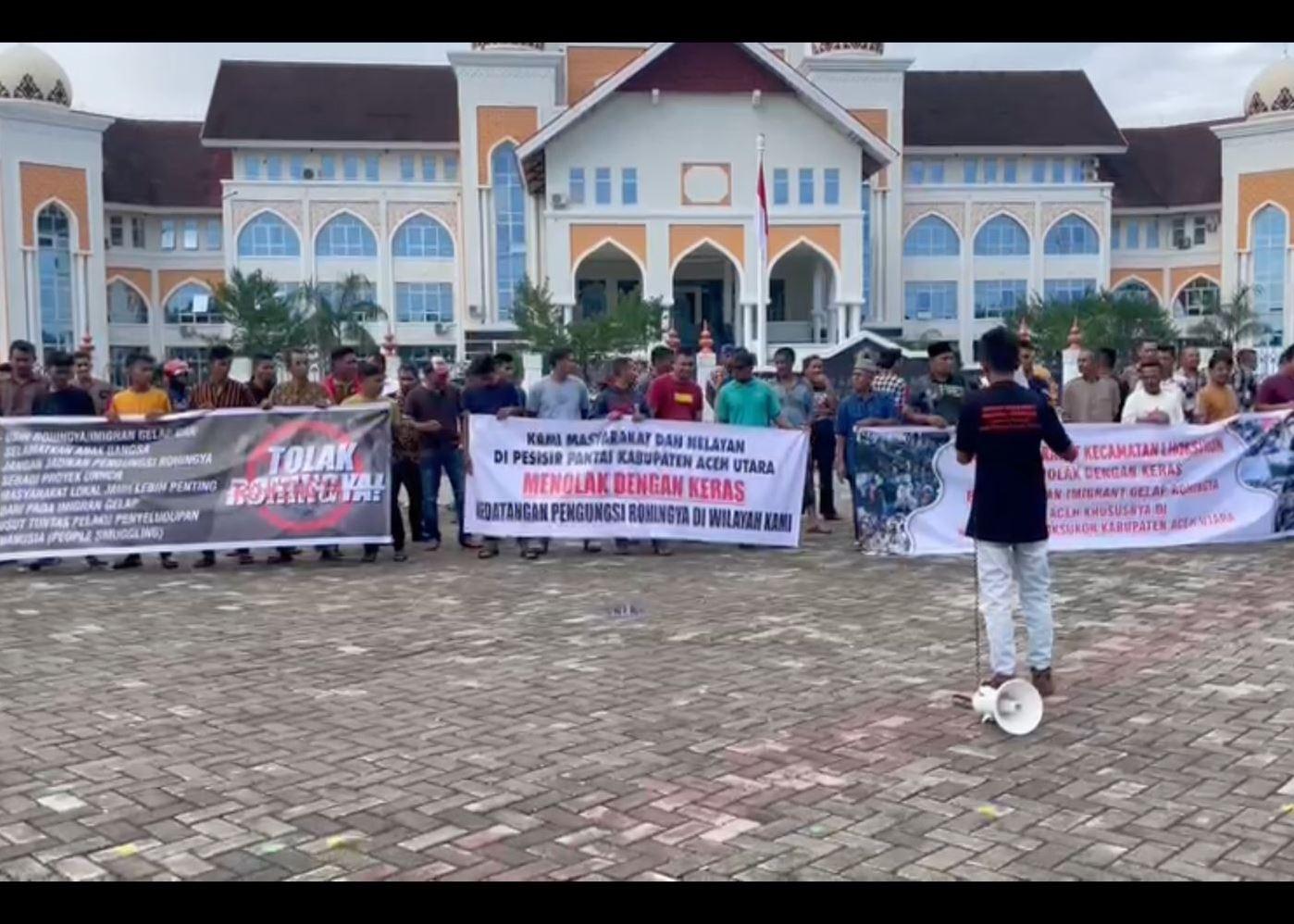 Demo di Kantor Bupati Aceh Utara, Ratusan Warga dan Mahasiswa Tolak Imigran Gelap Rohingya